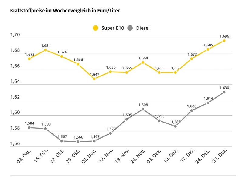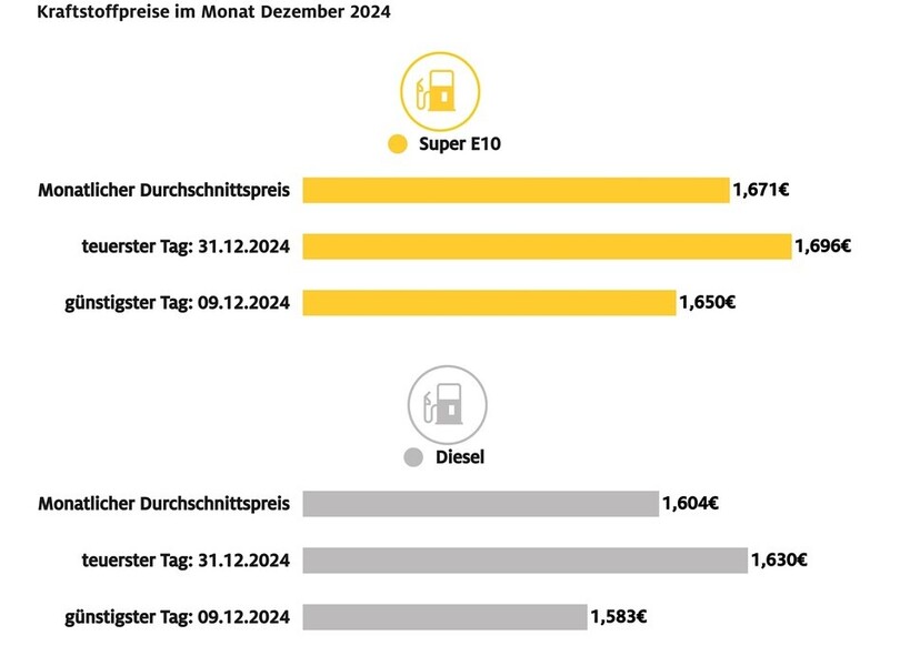 Die Kraftstoffpreise im Dezember 2024. Photo: ADAC via Autoren-Union Mobilität