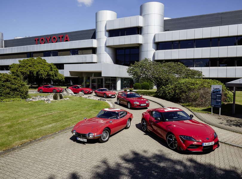 Jubiläumstreffen – Toyota 2000GT begegnet dem Supra Mk IV und dem aktuellen Toyota GR Supra. Die Kölner Toyota Collection präsentiert gleich zwei der raren 2000GT-Sportcoupés Foto: Toyota