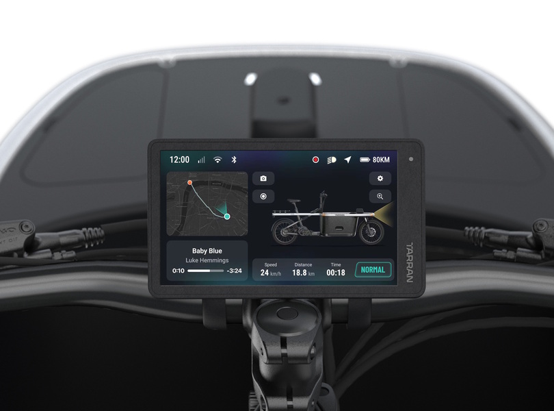 Das Lastenrad Tarran T1 Pro bietet einen großen Touchscreen, der das Fenster in die vernetzte Welt weit öffnet Foto: Tarran