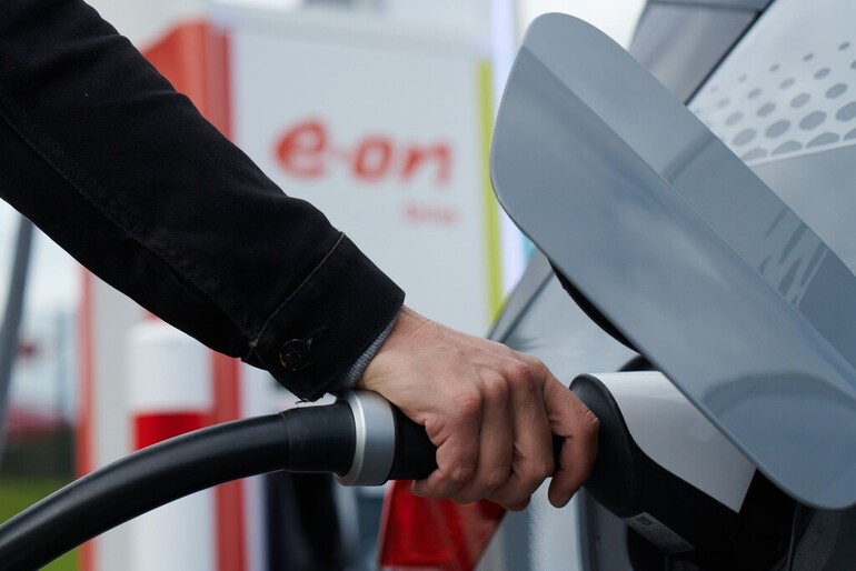 Elektroauto an einer Ladesäule von Eon. Photo: Autoren-Union Mobilität/Eon/Malte Braun