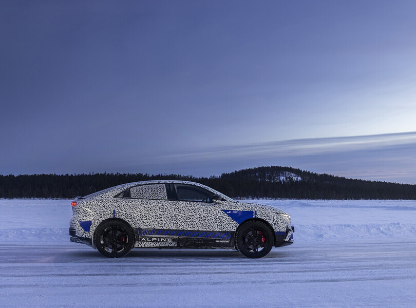 Bevor er in zweieinhalb Monaten offiziell vorgestellt wird, muss sich der Alpine A 390 noch letzten Bewährungsproben stellen. Bei Kältetests bei bis zu 40 Grad minus am Polarkreis in Schweden erhält das neue Fastback-Modell den letzten Schliff. Ziel der Fahrten auf verschneiten Straßen und zugefrorenen Seen ist es auch, das Leistungsniveau und die Agilität zu überprüfen. Der vollelektrische A 390 wird die erste viertürige Limousine in der 70-jährigen Geschichte der Marke. Gleichwohl liegt der Fokus auf den sportlichen Wurzeln von Alpine.