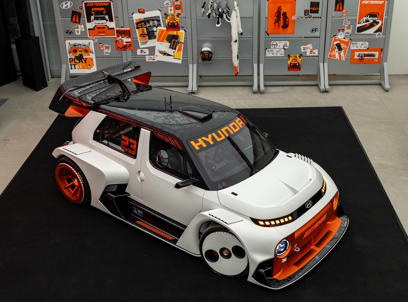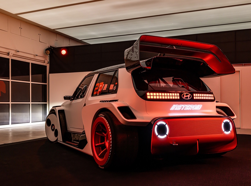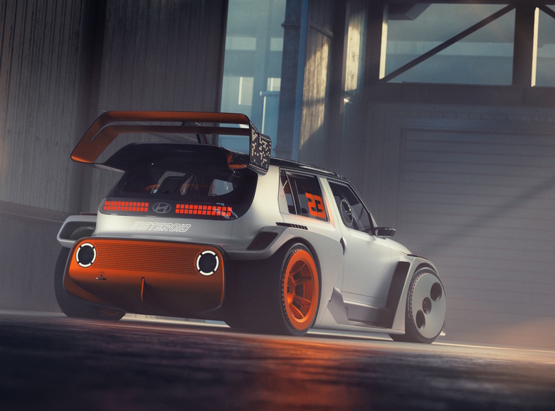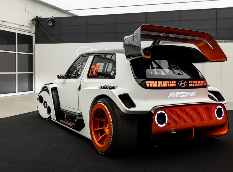 Ein markanter Heckflügel prägt die hintere Perspektive des Insteroid Foto: Hyundai