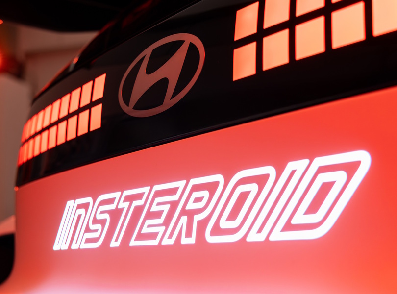 Eine reflektierende Rennbeklebung mit dem Schriftzug „Insteroid“ macht das Showcar unübersehbar Foto: Hyundai