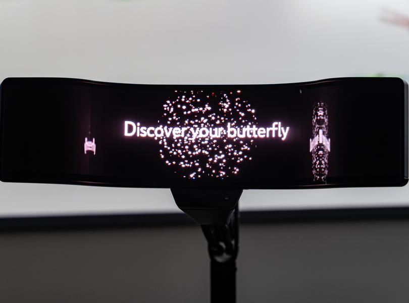 In einer dunklen Halle steht ein drei Meter hoher, zehn Meter breiter und vier Meter tiefer Bildschirm in Form eines schwarzen Schmetterlings, gefertigt aus 35 Kilometern Bambusfasern. Geht ein Betrachter daran vorbei, analysieren Sensoren dessen Herzschla Foto: Lexus