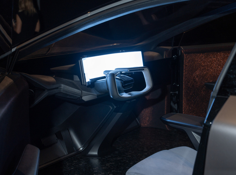 Schon jetzt ist im Lexus LF-ZC nur noch ein flugzeugähnliches halbrundes Steuer montiert Foto: Lexus