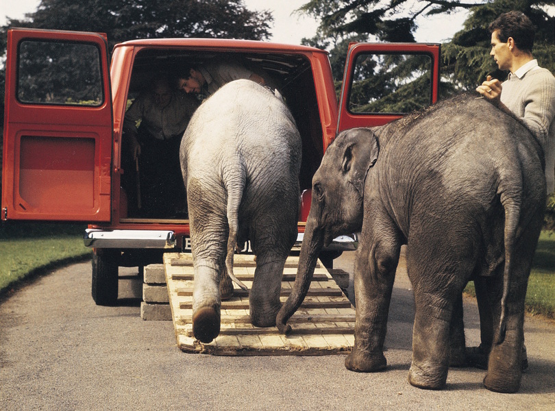 Kleiner Laster für große Aufgaben – 1965 bewährte sich der Transit bei einem Elefantentransport für den Londoner Zoo. Foto: Ford