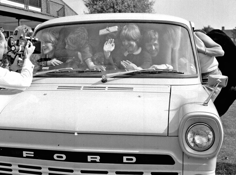 Mehr Platz als in anderen Pkw – 48 britische Studenten quetschten sich bei einem Weltrekordversuch in einen Transit. Foto: Ford