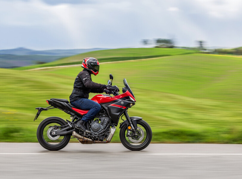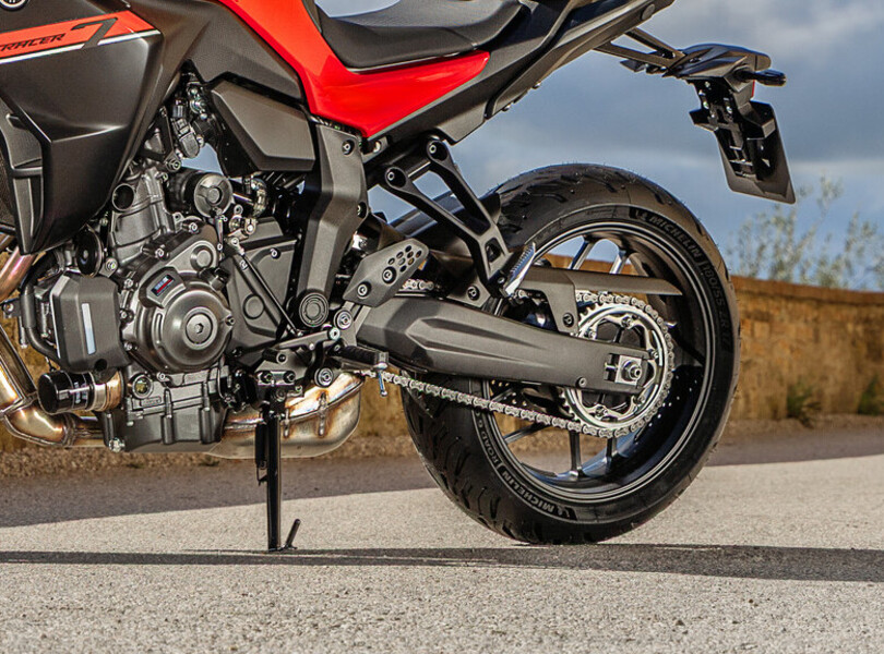 Yamaha hat der Tracer 7 und 7 GT ein Update spendiert, das auch einen steiferen Rahmen umfasst. Die Schwinge wurde für besseren Geradeauslauf um vier Zentimeter verlängert. Der drei Zentimeter höhere und fünf Zentimeter breitere Lenker steht für eine angenehmere Sitzposition insbesondere auf der Langstrecke. Dazu tragen auch dickere Polster und der vier Zentimeter längere Soziussitz bei. Beide Sitze sind um zwei Zentimeter höhenverstellbar.