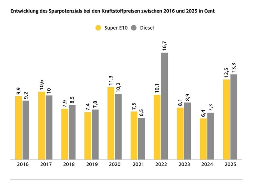Wer den richtigen Zeitpunkt abwartet, der kann beim Tanken derzeit im Tagesverlauf weit über zehn Cent pro Liter sparen. Das jedenfalls hat der ADAC herausgefunden. Bei Super E10 lag die Preisdifferenz im Mai zwischen dem Höchst- und dem Tiefststand eines durchschnittlichen Tages bei 12,5 Cent. Im Vorjahr betrug der Preisunterschied lediglich 6,4 Cent, die bisherige Rekorddifferenz hatte der ADAC im Jahr 2020 mit rund elf Cent registriert. Dieselfahrer können allein durch die Wahl des richtigen Tankzeitpunkts bis zu 13,3 Cent je Liter sparen nach 7,3 Cent im Vorjahr und mehr als 16 Cent im Jahr 2022. Damals waren die Kraftstoffpreise nach dem russischen Angriff auf die Ukraine regelrecht explodiert.