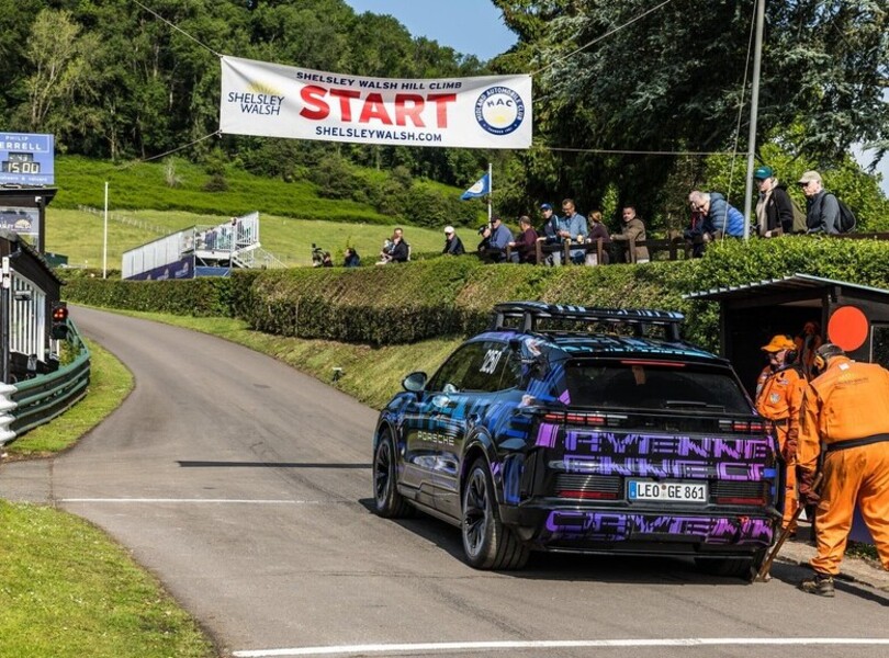 Beim traditionellen Bergrennen von Shelsley Walsh in Großbritannien hat sich für Dreharbeiten zu einem Filmprojekt ein getarnter Prototyp des Porsche Cayenne Electric unter die Teilnehmer der Britischen Hillclimb-Meisterschaft gemischt. Gefahren wurde er von Gabriela Jílková, Simulator- und Entwicklungsfahrerin des Formel-E-Teams. Gleich im ersten gewerteten Versuch unterbot sie die bisherige Rekordzeit für SUV auf der 914 Meter langen Strecke mit bis zu 16,7 Prozent Steigung um über vier Sekunden.