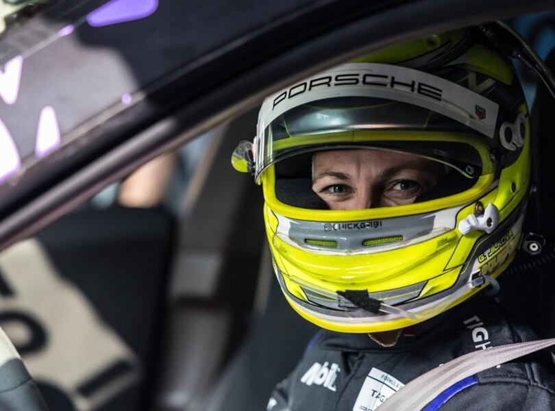 Formel-E-Entwicklungsfahrerin Gabriela Jílková fuhr mit einem getarnten Prototyp des Porsche Cayenne Electric beim traditionellen Bergrennen von Shelsley Walsh in Großbritannien eine Bestzeit. Photo: Porsche via Autoren-Union Mobilität