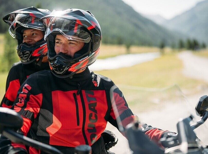 Ducati-Motorradjacke Tour Summer C1 und Helm Strada Tour V5. Photo: Ducati via Autoren-Union Mobilität