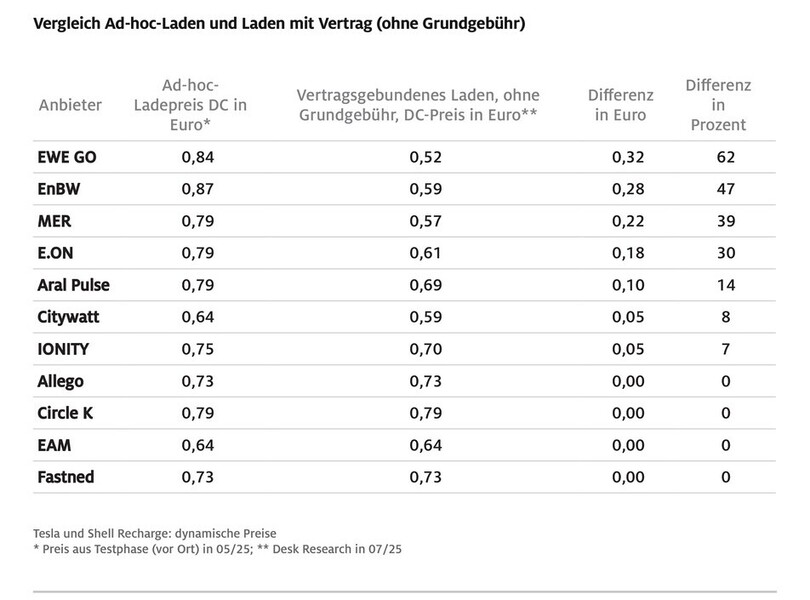 ADAC-Stichprobe an der Autobahn: Spontanes Laden ohne Vertragsbindung ist beim gleichen Anbieter bis zu 62 Prozent teurer als bei einer vertragsbasierten Variante ohne Grundgebühr. Photo: ADAC via Autoren-Union Mobilität