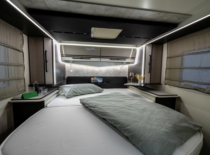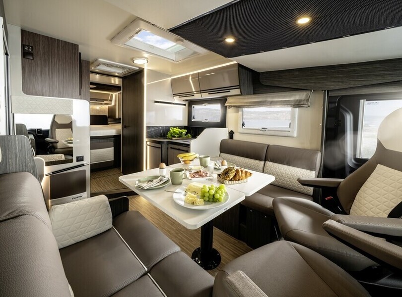 Es kommt Bewegung in den Reisemobilmarkt. Nachdem die Preise über viele Jahre nur eine Richtung der Entwicklung kannten, nämlich die nach oben, zeigt Forster, dass es auch Luft nach unten gibt: Die zu Eura Mobil und der französischen Trigano-Gruppe gehörende Einsteigermarke senkt die Preise bei Camping-Kastenwagen und bietet auch gut ausgestattete und geräumige integrierte Reisemobile zu vergleichsweise günstigen Konditionen an. Die ausgebauten Citroën Jumper gibt es in der neuen Saison mit mehr funktionalen Ideen, neuem Design ab rund 43.000 Euro, das sind etwa 4000 Euro weniger als bisher. Erstmals realisiert Forster auf bei sechs Meter Karosserielänge längs eingebaute Einzelbetten im Heck.