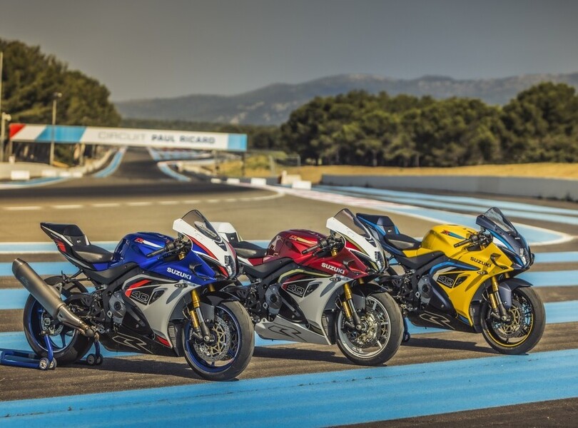 Aus Anlass des 40. Geburtstags der GSX-R 750 bringt Suzuki eine Supersport-Ikone zurück ins Modellprogramm: die GSX-R 1000 R. Allerdings müssen sich Europäer noch ein Jahr lang gedulden und bekommen die „40th Anniversary Edition” damit etwas verspätet. Der Vierzylinder der R leistet 195 PS (144 kW) bei 13.200 Umdrehungen in der Minute und liefert bis zu 110 Newtonmeter Drehmoment. Das ist in beiden Fällen etwas weniger als zuletzt.