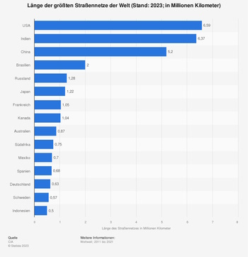 Die USA und Indien haben das größte Straßennetz Foto: Statista